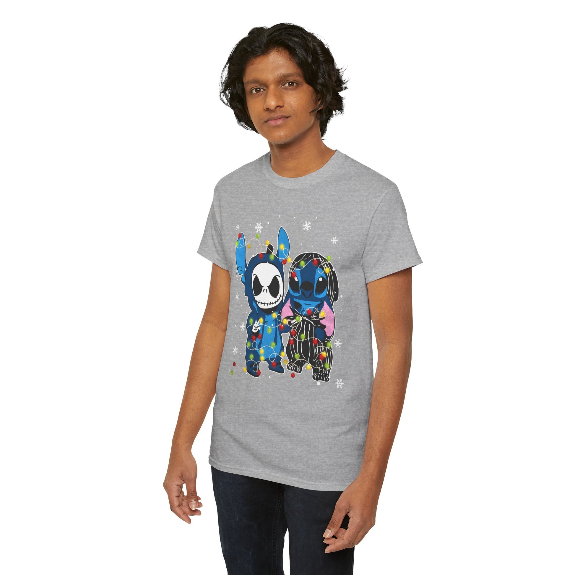 Cute Holiday Duo Christmas Unisex Heavy Cotton T-Shirt – Cartoon Alien & Skeleton Festive Tee