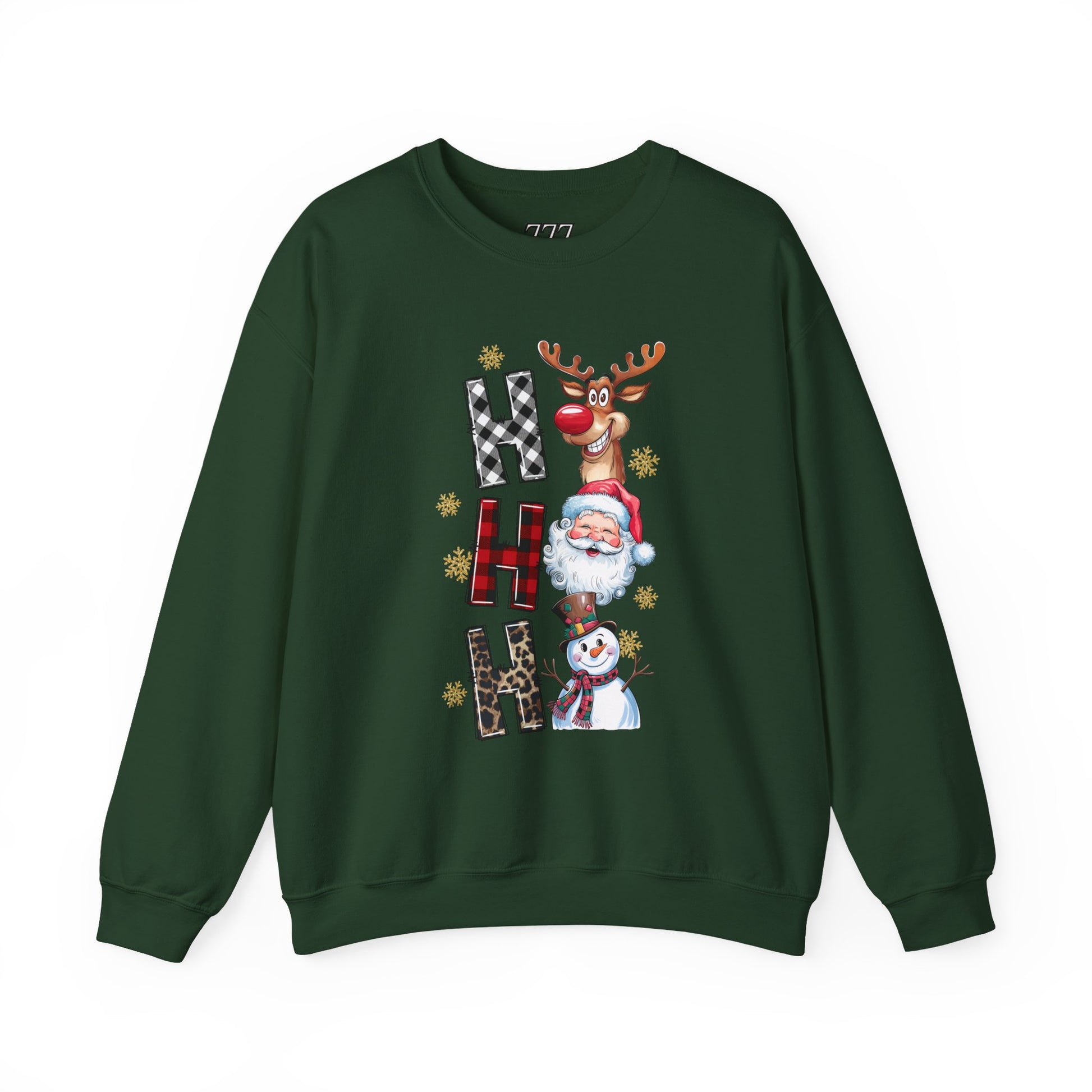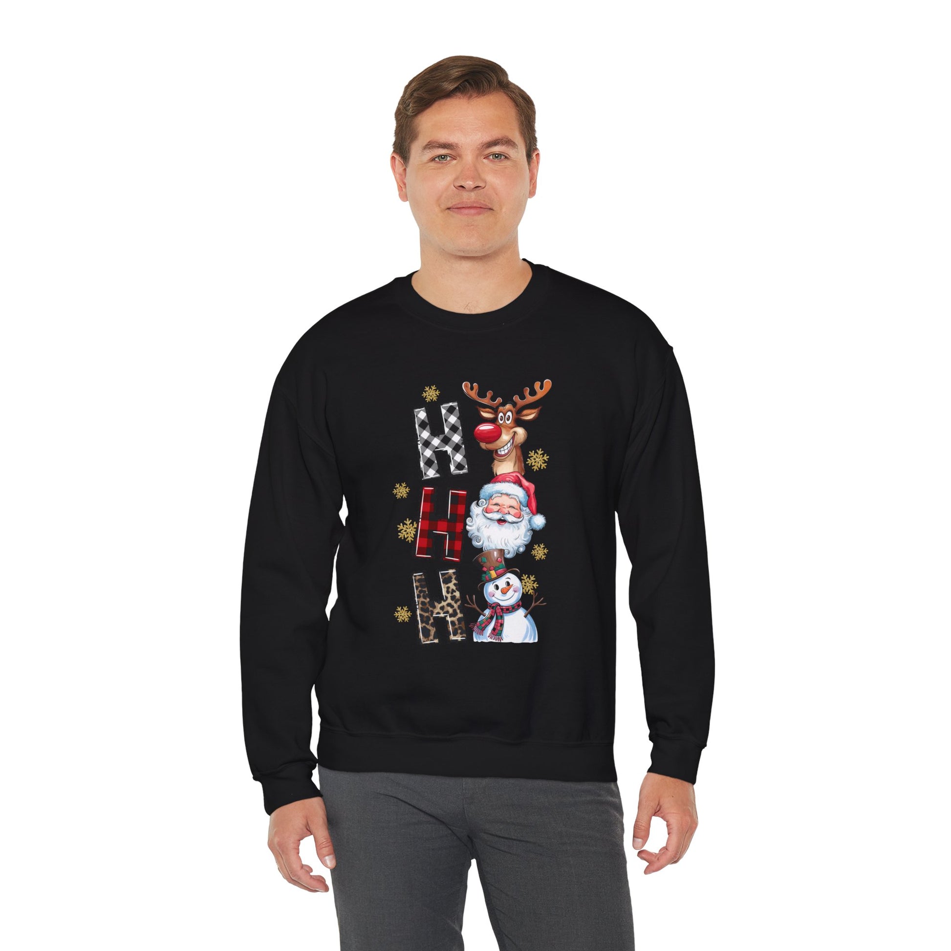 HO HO HO Christmas Unisex Heavy Blend Crewneck Sweatshirt – Santa, Reindeer & Snowman Holiday Sweater