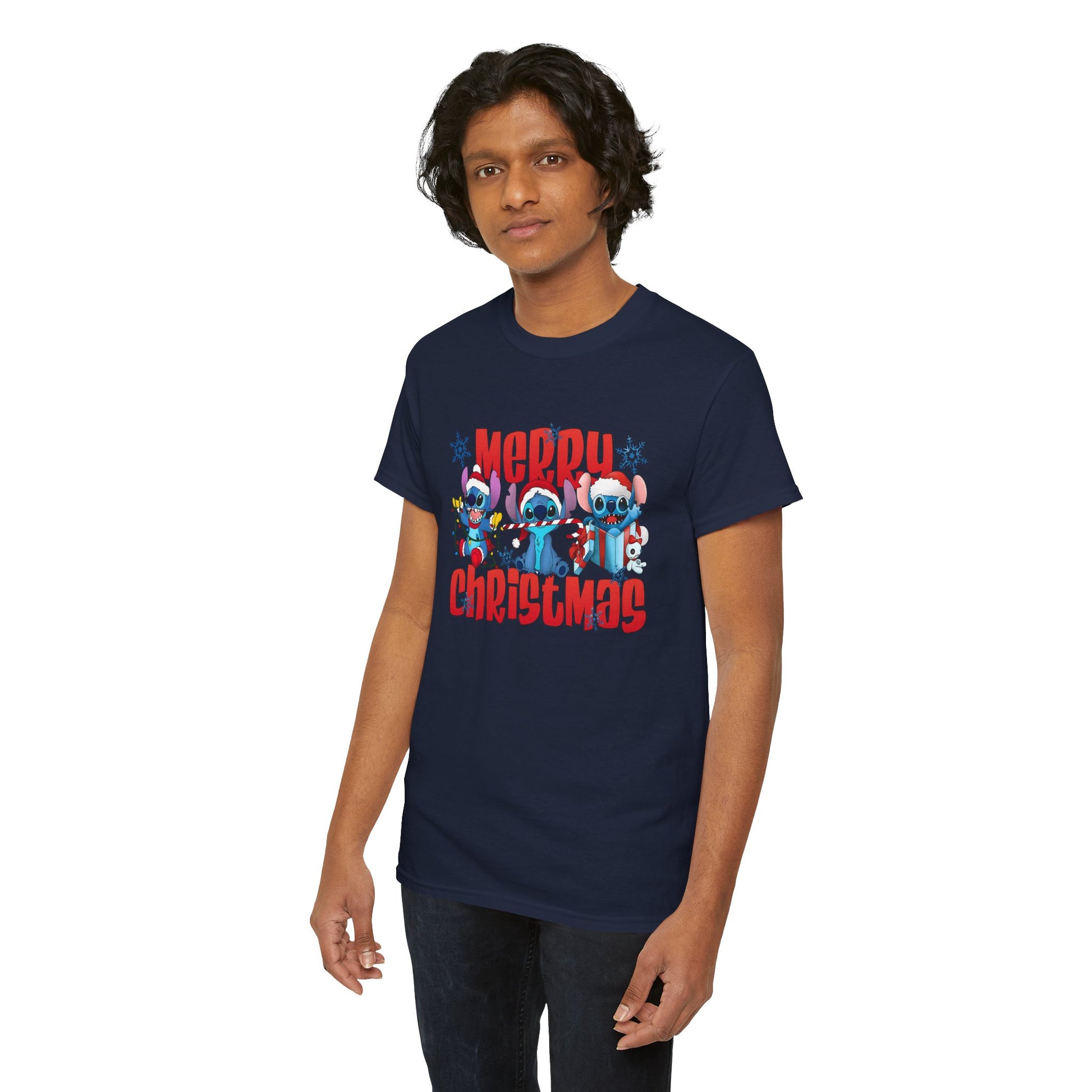 Merry Christmas Unisex Heavy Cotton T-Shirt – Cute Blue Holiday Characters Christmas Tee